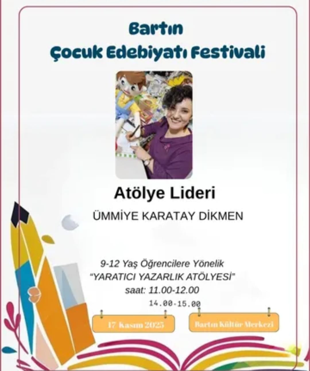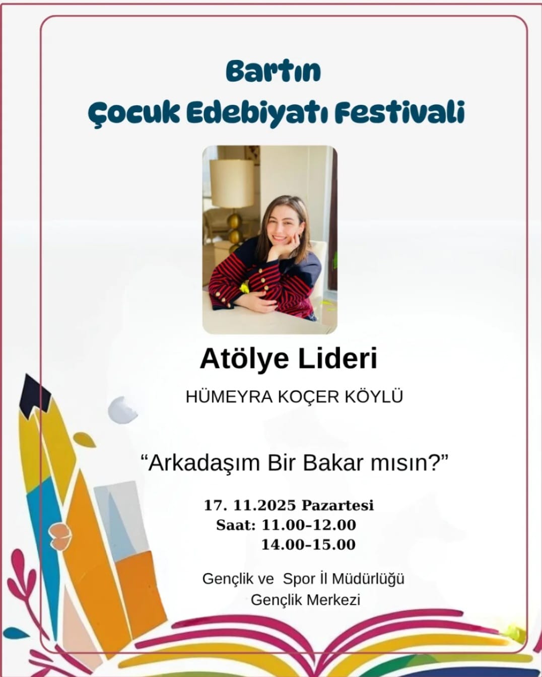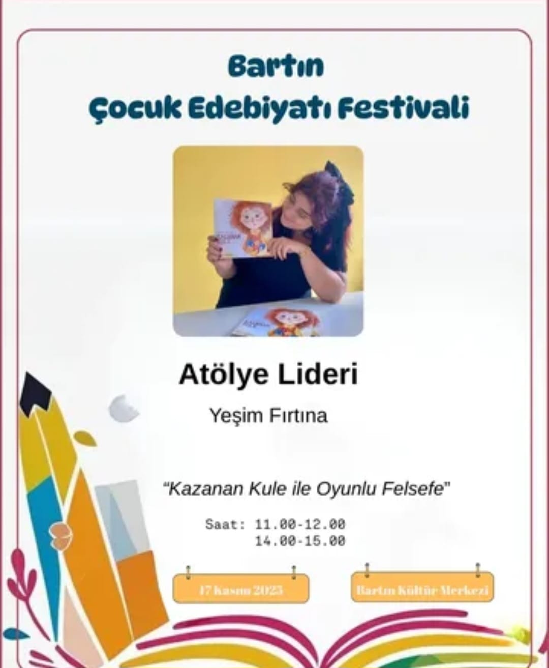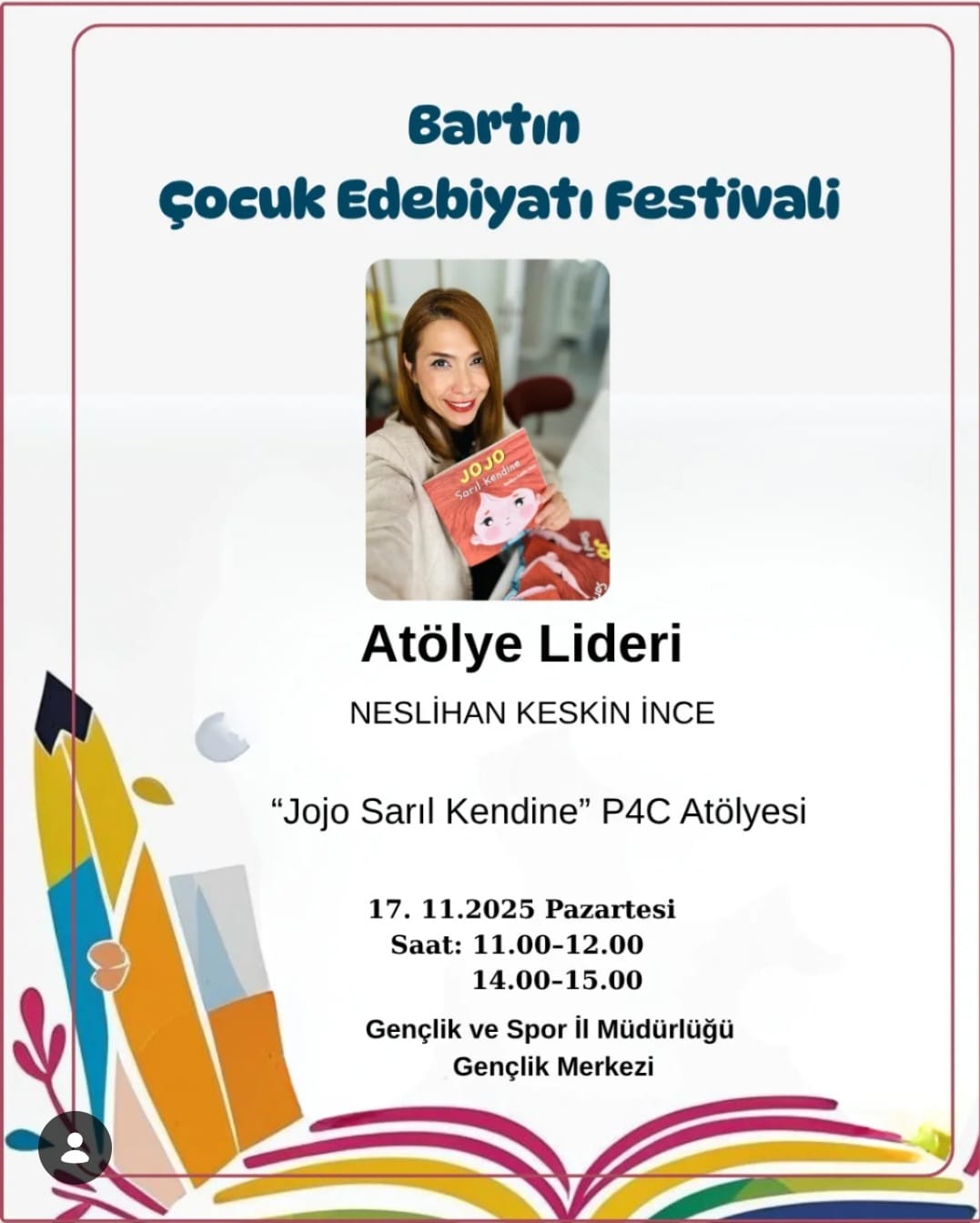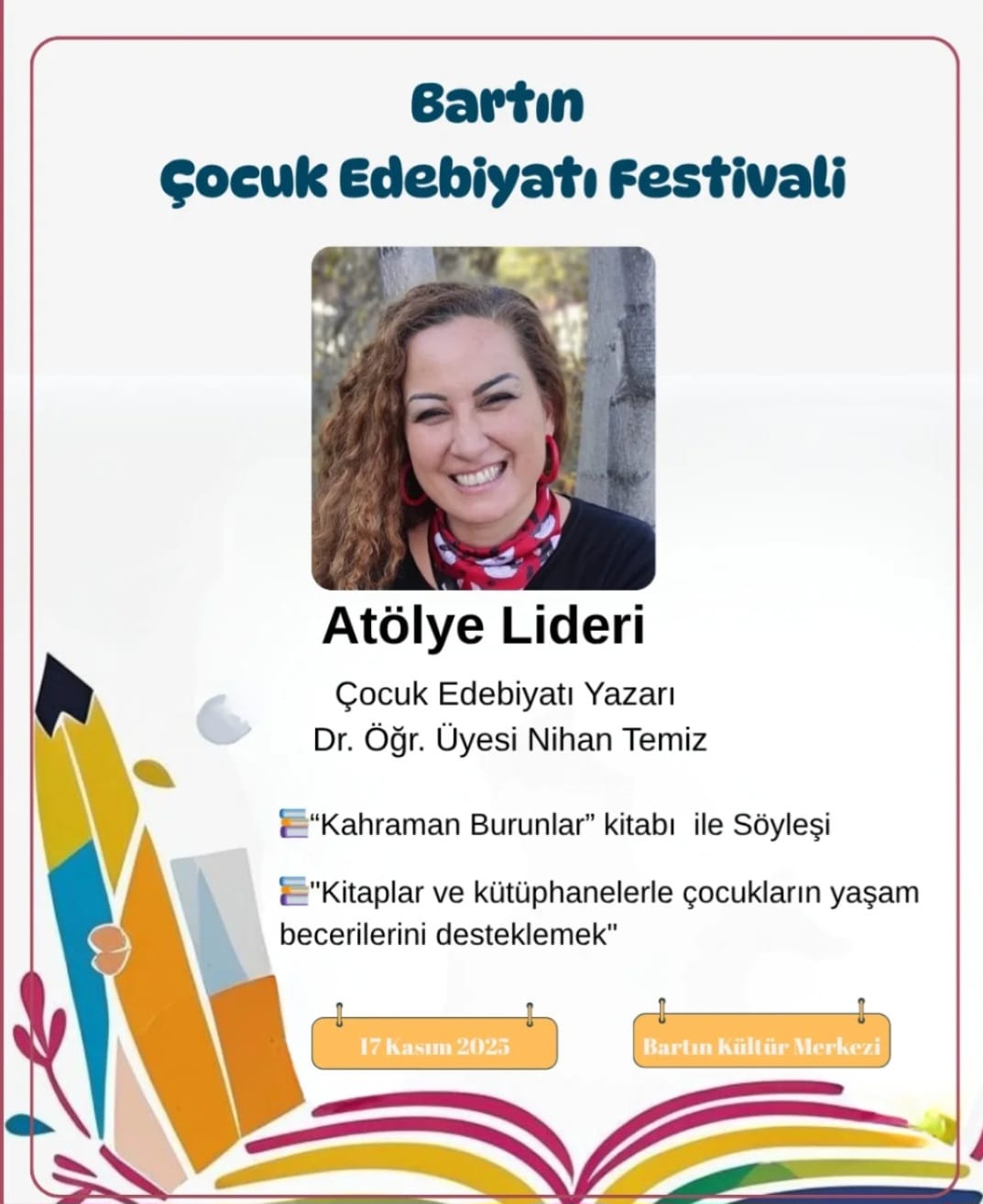 Bu eğlenceli söyleşide çocuklar, kitap kahramanlarının maceralarını keşfederken yazarla yaratıcı okuma ve yazma üzerine sohbet edecek. Hayal gücü, kahkaha ve kitap sevgisi bu buluşmada bir arada! Eğitimci eğitiminde, kitapların ve kütüphanelerin çocukların yaşam becerilerini nasıl destekleyebileceğine dair teorik ve uygulamalı bir içerik sunulacak. Katılımcılar, çocuklarla kitap merkezli düşünsel etkinlikler planlamayı ve okuma kültürünü derinleştirmeyi öğrenecek