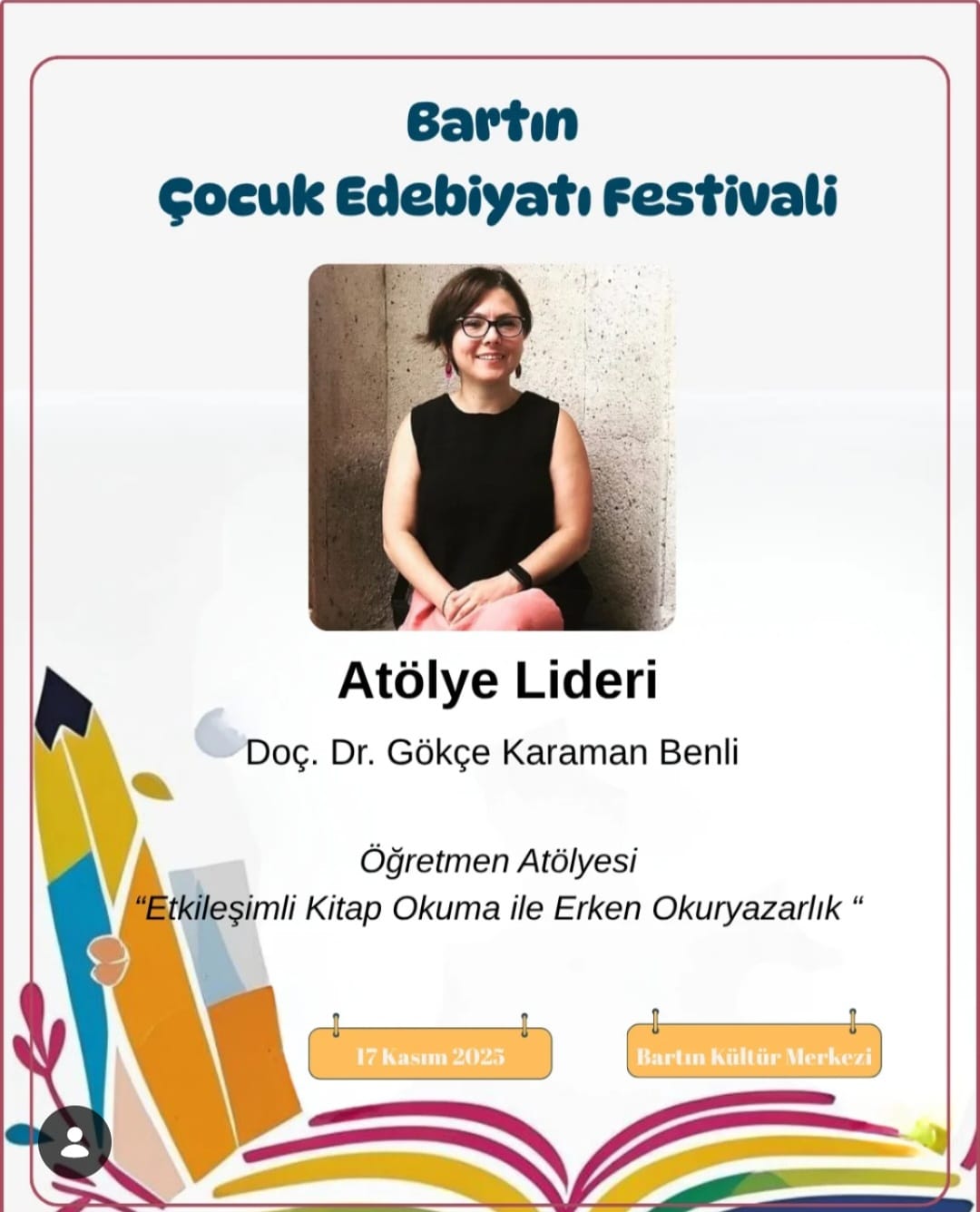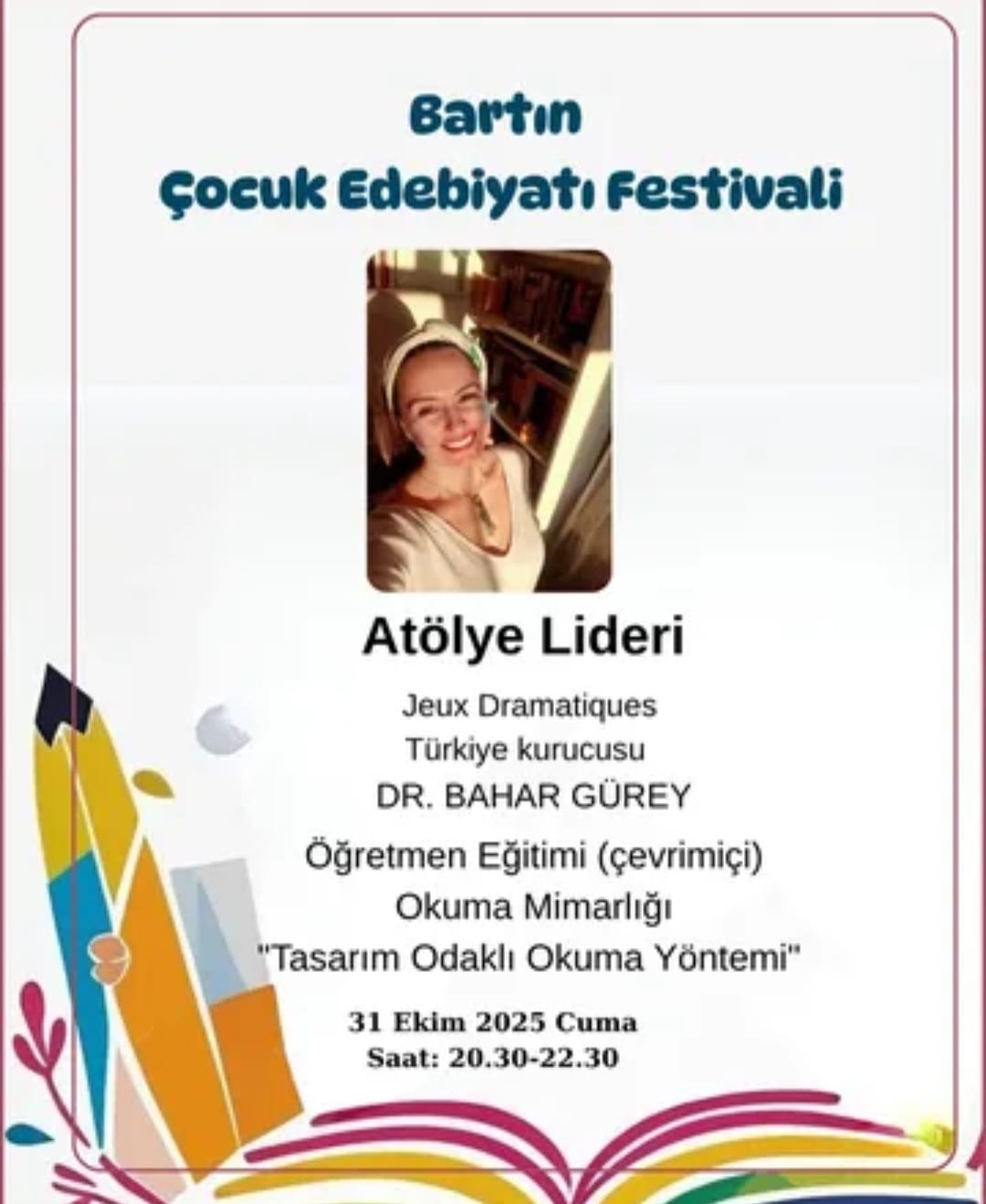 Bu atölyede öğretmenler, kitaplardan yola çıkarak çocukların düşünme, sorgulama ve ifade becerilerini nasıl geliştirebileceklerini keşfedecekler. Kitaplarla Düşünsel Etkinlikler, çocuklarla derinlemesine okuma ve anlam kurma süreçlerini destekleyen uygulamalı bir eğitim sunuyor. Katılımcılar, çocukların merak duygusunu besleyen ve eleştirel düşünmeyi teşvik eden etkinlik örnekleriyle tanışacak. Bir kitap, bir fikir — her sayfa yeni bir düşünce yolculuğu!